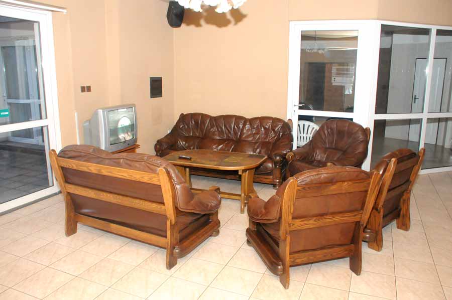 Drei Apartments im Obergeschoss hatten in Richtung Osten einen Balkon. Die in allen Apartments im Bestand befindlichen TV-Geräte älterer Bauart sind nicht Leistungsbestandteil - funktionieren jedoch mit Analogprogrammen per Antenne. Beschrieben ist nur das eine SAT-TV- Gerät mit CD-Player im Wohnzimmer. Das beschriebene Radio entdeckten wir im Fitnessraum